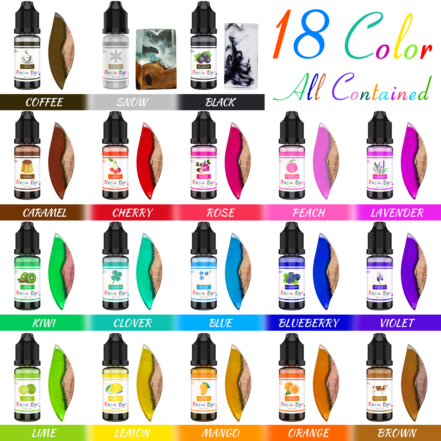18 x 10ml Resin Colorants.